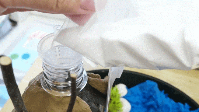 용암을 표현하는 딸기 레진 더 잘 분출할 수 있게 주방 세제도 넣어주고