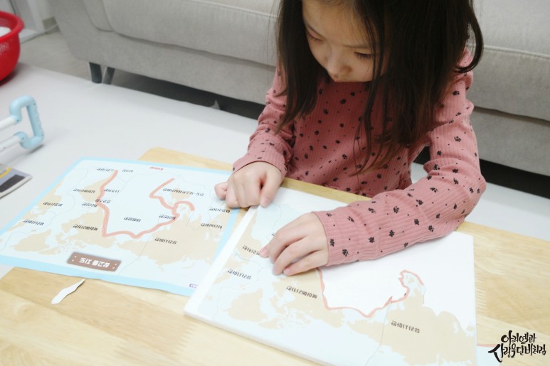 토막토막 자른 땅을 보면서 한국도 보고 참고 활동지 보면서 토막토막 맞추기도 하고