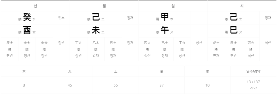 누구의 사주나 운세인지는 모르겠지만, 예를 들어 입력한 사주입니다.