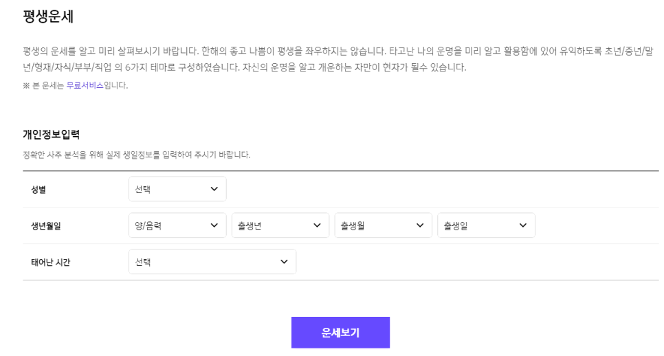 모두 입력하시면 운세를 보는 만큼만 눌러주시면 결과가 나오니 조금만 더 기다려주세요.