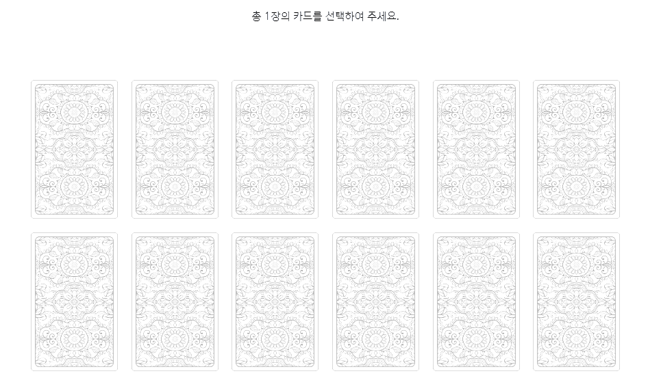 저는 개인적으로 타로를 좋아합니다.한 장의 카드만 고르면 됩니다.그리고 결과 표시를 눌러 주세요. 한번만 하는 것이 좋습니다.