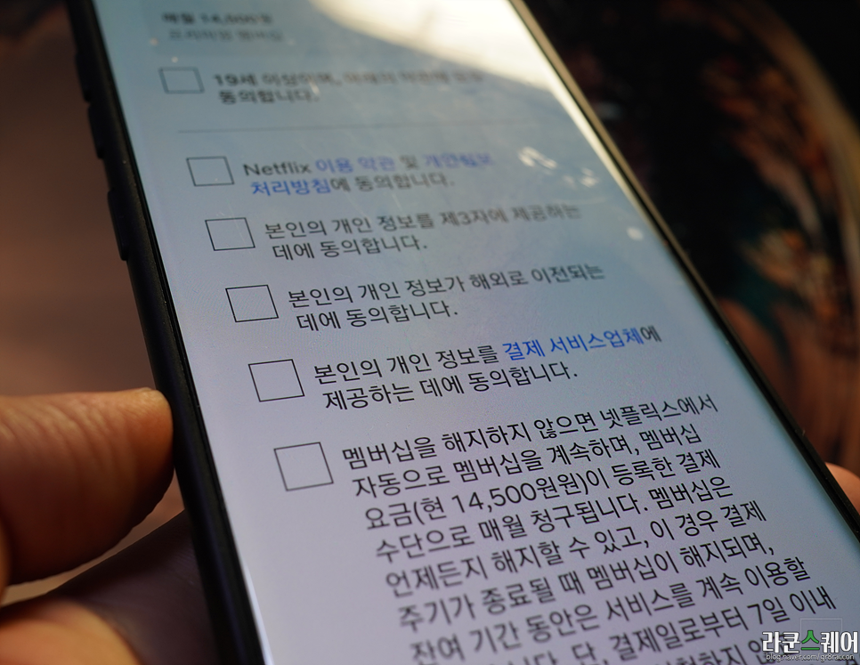 비밀번호 설정 후 약관에 동의로 체크를 완료했다면 넷플릭스 회원가입은 거의 끝났다고 보시면 됩니다!