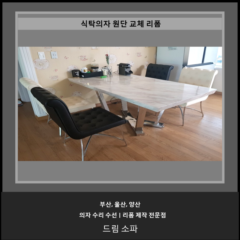 깨지는 식탁의자 리폼 천갈이 울산 양산 부산 식탁의자 천갈이 리폼 안녕하세요. 12월 중순도 지나고 이제 2021년을 마무리할 때가 점점 다가옵니다.코로나로 바쁘지 않지만 그래도 설레는 자동차들도 곧 다가와 한 해를 마무리하고 다가오는 새해를 맞는 재야의 종소리까지.모든 게 부담스럽기도 해요.기분은 저도 마찬가지지만 시국이라 매우 신중합니다.기온이 그렇게 낮지는 않은데 찬바람이 귓볼을 때리네요.내일은 비 소식이 있습니다만, 일기 예보가 맞을 지도 의문인 요즘입니다만, 비가 오면 완전히 겨울이 오지 않을까 생각합니다.