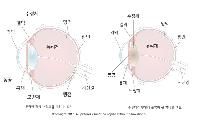 백내장이라는 질환은 눈 속의 수정체에 탁함이 생겨 잘 보이지 않고 흐릿한 시야 증상이 나타납니다.따라서 눈앞에 있는 물건이나 책을 볼 때도 잘 보이지 않기 때문에 매우 힘든 일상을 보내야 합니다.