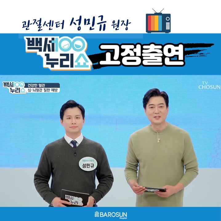 안녕하세요, 밤입니다~!바로손병원 관절센터 손민규 원장은 TV조선 백세누리쇼에 정형외과 전문의를 대표해 출연하고 있습니다~! (a.k.a 트리손민규 원장)