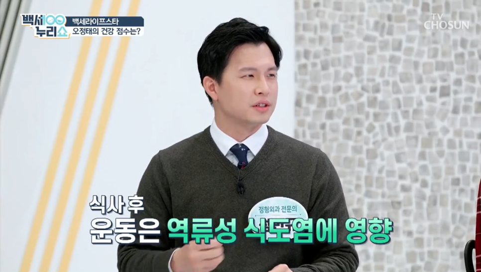 출처 : TV조선 백세누리쇼 식사 후 운동은 역류성 식도염에 걸릴 수 있습니다.식사 30분 후에 운동하는 것이 좋아요.’스텝박스 운동’입니다.