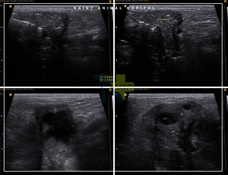 초음파와 방사선 검사에서 탈장이 확인됐지만 특정 조직에 대한 판단은 어려웠습니다.직장 회음부 탈장이 가장 의심스러웠어요.꿈*이 나이가 많아서 학부모님과 충분한 상담 후 수술을 진행하기로 결정하였습니다.