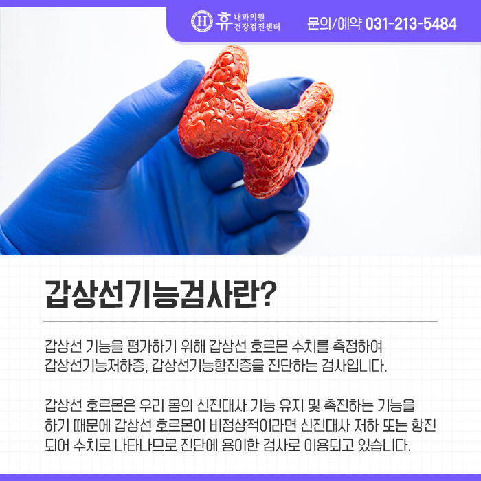 갑상선 기능 검사는 갑상선 기능을 평가하기 위해 갑상선 호르몬 수치를 측정하여 갑상선 기능 저하증, 갑상선 기능 항진증을 진단하는 검사입니다.