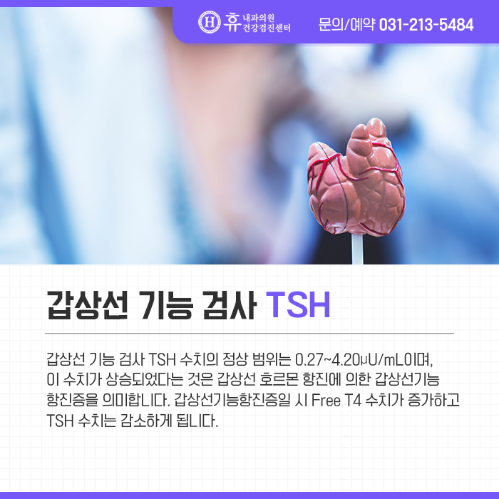 갑상선 호르몬은 우리 몸의 신진대사 기능 유지 및 촉진하는 기능을 하기 때문에 갑상선 호르몬이 비정상이라면 신진대사 저하 또는 항진하여 수치로 나타나기 때문에 진단에 용이한 검사로 이용되고 있습니다.