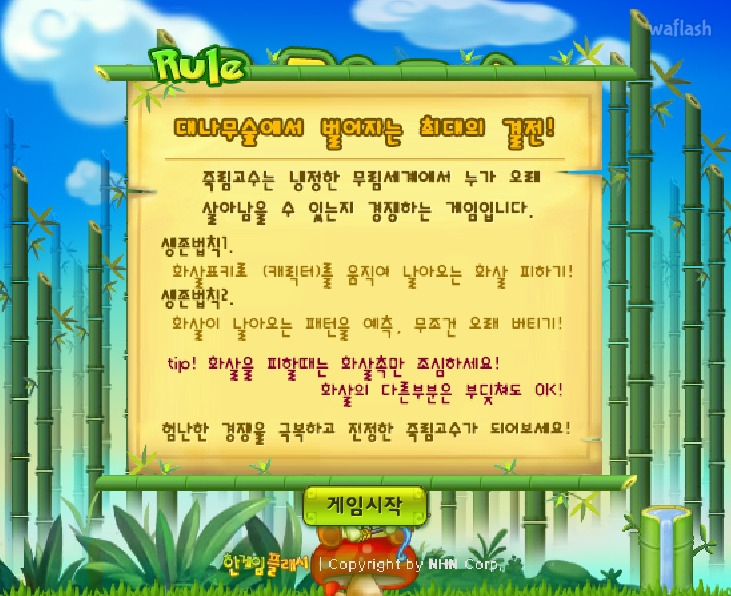 요즘 재미있는 플래시 게임을 하나 발견하고 여러분께 소개하기 위해 포스팅을 작성합니다. 대나무 숲의 달인이라는 이름의 플래시 게임입니다. 귀여운 동자가 주인공으로 최고의 달인으로 거듭나기 위해 대나무 숲에서 날아오는 화살을 피하는 콘텐츠를 담았습니다.