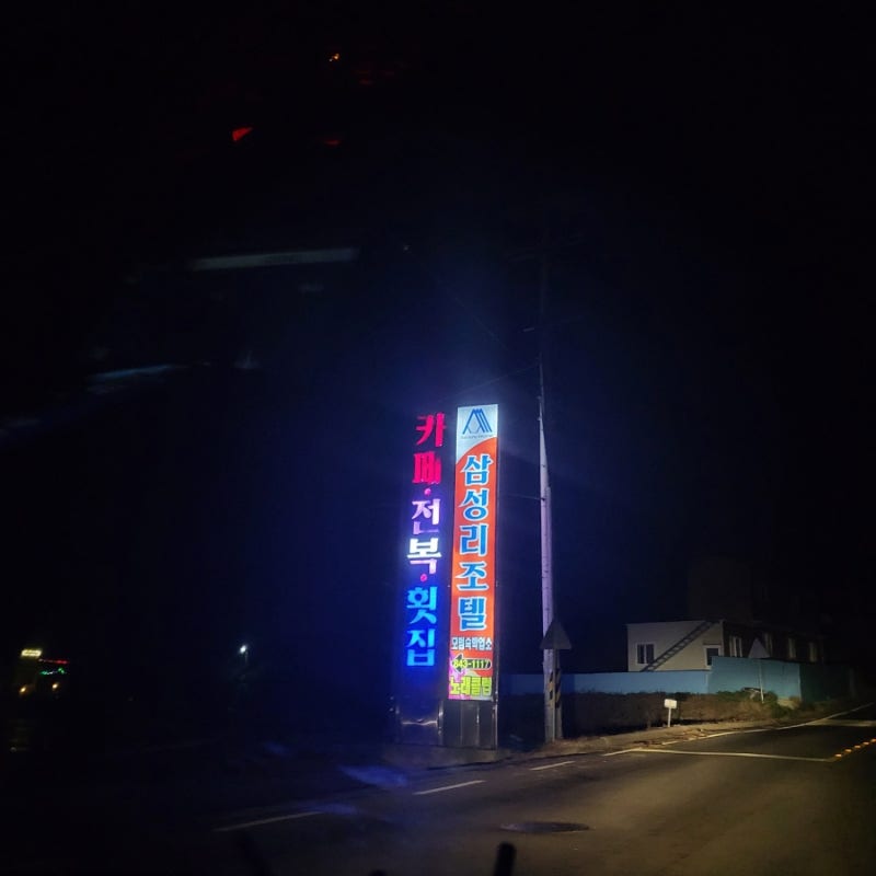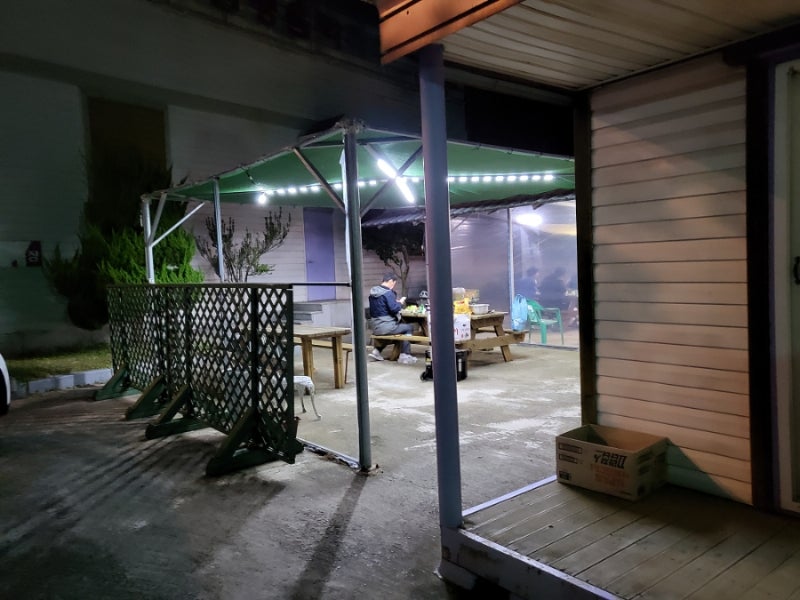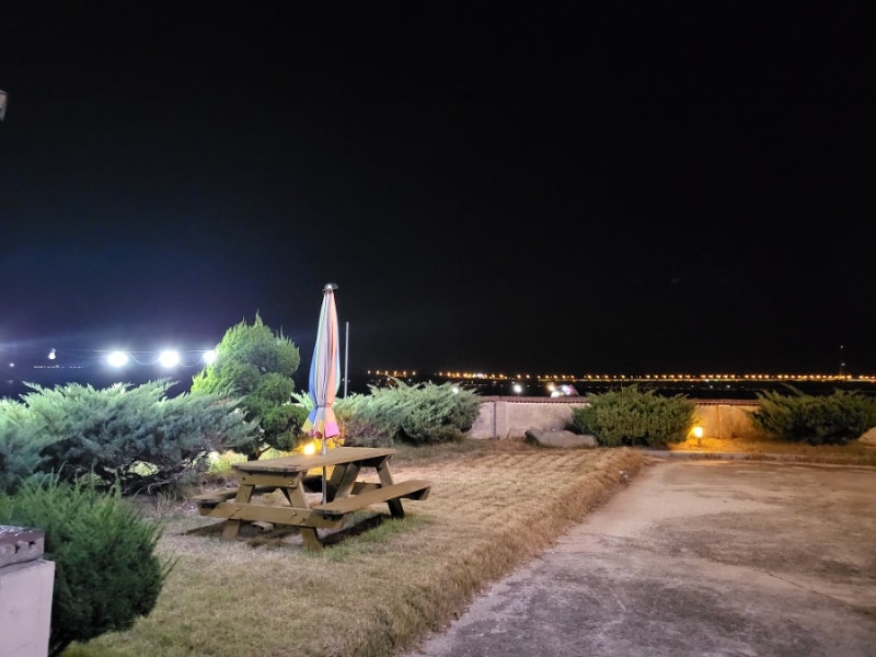주차장 옆 테라스 뒤로 보이는 고흥의 밤바다~~어두워서 잘 보이지 않지만 밤에 봐도 운치있고 좋았습니다.참고로 주변 여행지는 갯벌체험 뿐만 아니라 붉은띠봉, 연홍도, 팔령산, 고흥, 팔령대교, 거금도 둘레길 등 힐링 명소도 많이 있습니다. (웃음)