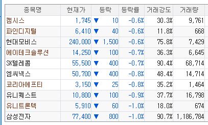 트루윈(105550) 자동차용 센서 메이커.자율주행차 관련 레이더 개발팅크웨어(084730) 아이나비 시리즈 ADAS 전용 단말기 파인 디지털(038950) 파인 드라이브(Fine Drive) 하이비전 시스템(126700) 자율주행용 비전 센서 검사장비 개발.한국단자(025540) 자동차 및 전자용 초정밀 커넥터 종합부품업체 한국테크놀로지(053590) 자동차 전장 및 기술 엔지니어링 사업 한컴MDS(086960) 스마트 자동차 소프트웨어 개발 솔루션 제공.현대모비스(012330) 현대자동차그룹의 현대차(005380) 자동차 제조 및 판매회사.