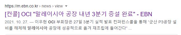 3. OCI는 말레이시아 공장에서 추출한 말레이시아는 부지 무료 지원+전기요금 한국의 1/3 수준이라고 주장해 경쟁력이 있다.