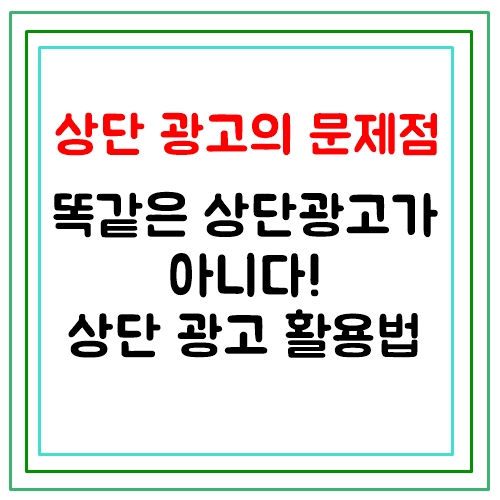 어쨌든 상단에만 광고를 넣는다고 효과가 있는 것은 아니기 때문에 같은 상단 광고라고 해서 어떤 식으로 광고를 넣느냐에 따라서 상단 광고가 무용지물이 되는 건지 효자가 되는 건지 달라지겠죠.또한,상단광고는이탈률과체류신간과도관련되므로하단링크에좀더자세히포스팅해놓은글을한번읽어보시고상단광고에대해참고해주시길바랍니다. 감사합니다。