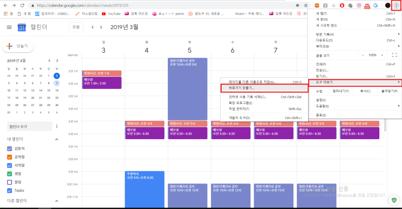 구글 캘린더 바탕화면에 일반 프로그램처럼 쓰고 휴대폰 연동