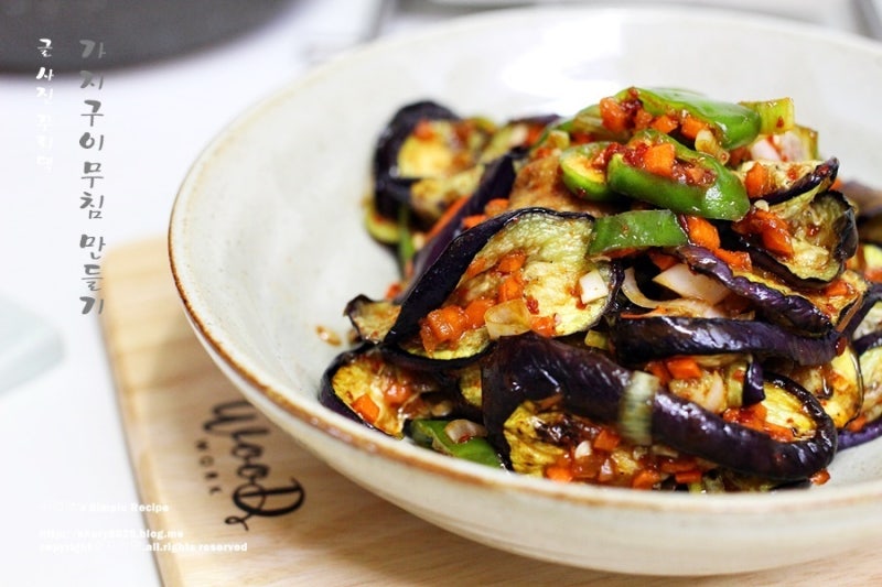 가지는 대표적인 보라 색 야채로 슈퍼 푸드로 알려지고 있습니다.황산 화성 분 안토시아닌이 다량으로 함유되기 때문이죠.가지에 들어 있는 안토시아닌은 중성 지방을 낮추고 피를 맑게 하는 인슐린 생성을 높이는 효과가 있고 당뇨 예방 및 치유 효과적이고, 열이 높을 때 먹으면 체온 조절에 좋대요.칼로리가 적지만 비타민, 미네랄, 식물 섬유를 많이 포함하고 있어 열량이 낮고 살을 빼는데 도움이 되고 혈액 순환을 개선하는 효과가 있습니다.가지에는 소량의 독소가 있으니, 날것으로 안 먹고 반드시 익혀서 드세요.슈퍼 푸드 가지를 구워서 가지 무침을 만들어 보았습니다.가지를 에어 프라이어로 구워서 무침을 만들면 물기 없이 설거지할 시간도 덜 들어 음식이 편했습니다.시루에 쪄서 요리할 경우, 냄비에 물을 끓여서 찐 후에 가지의 물기를 잡으려고 짜야 하는 불편함이 있잖아요.프라이팬으로 구워때 앞뒤로 뒤집지 않으면 프라이팬에 몇개 싣지 못하는 것으로 잠시 서서 굽지 않으면 안 되잖아요.에어 프라이어로 구우면 이런 번거로움이 없습니다.