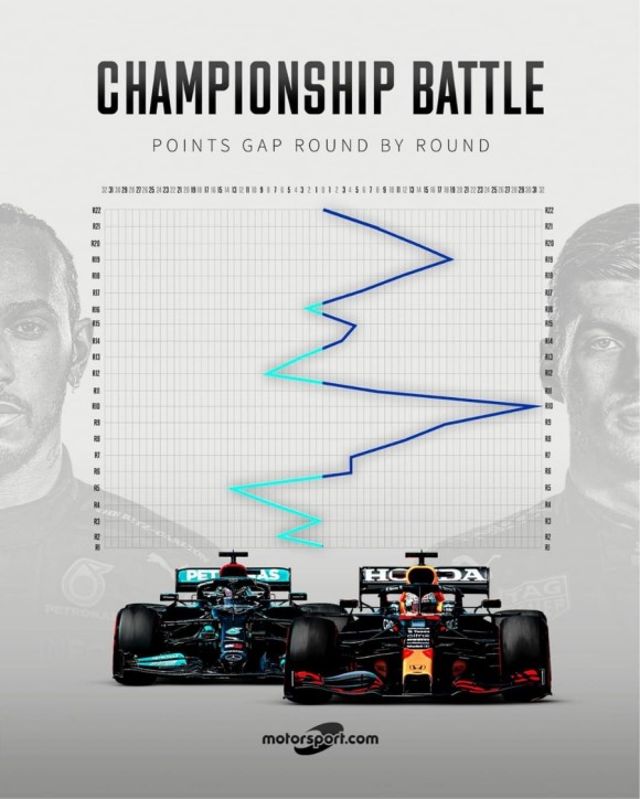 결국 1년간 전 세계를 돌며 경기를 펼친 결과 루이스 해밀턴과 막스 벨스타펜의 챔피언십 경쟁은 결국 누가 유리한지를 따질 필요 없이 원점으로 돌아가고 말았다.