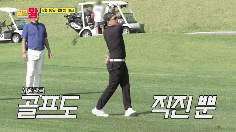 골프왕 13회에서는 골프 유튜버 배우 윤다훈, 입골프의 달인 박상명, 직진남 정준, 프로골퍼 출신 아내와 결혼한 배우 이상훈이 출격해 골프왕 멤버들과 담판 승부에 나섰는데요. 정준은 골프 대결에 앞서 전화 퀴즈 대결에서 2년 전 연애의 맛을 통해 만난 여자친구 김유지와의 통화에서 여전한 애정을 뽐내 시선을 사로잡았습니다.