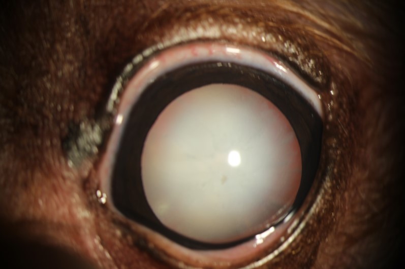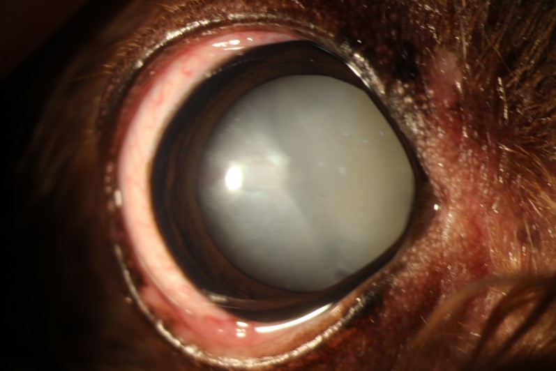 검사 결과 티치는 당뇨성 백내장으로 인한 양안 미성숙~성숙 백내장 상태임을 확인하였으며 시력저하 증상도 이 때문인 것으로 확인되었습니다.보호자가 시력 회복을 원했기 때문에 티치 치료 방법으로 백내장 수술이 선택되었습니다. 백내장 수술 전 정밀검사를 통해 수술 후 합병증 위험이 높지 않고 수술 시 충분한 시력개선을 기대할 수 있는 상태였기 때문에 백내장 수술을 진행하기로 최종 결정하였습니다.