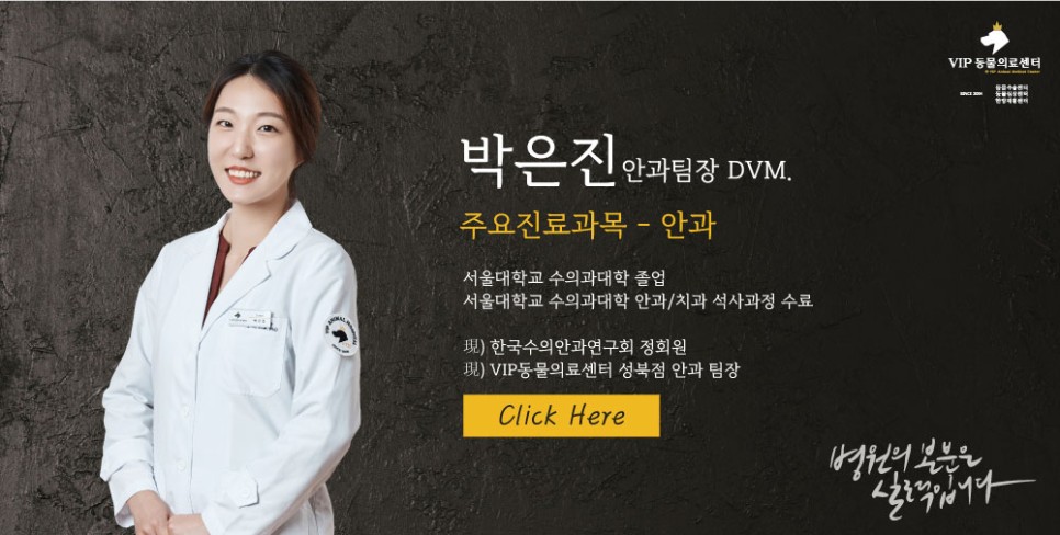 당뇨병성 백내장은 빠르게 진행되는 경우가 많고 갑작스러운 시력소실 증상으로 인해 보호자분이나 환자분 모두 당황스러운 경우가 많습니다. 또한 포도막염이나 수정체 파열과 같은 부가적인 합병증도 다른 백내장보다 심각한 경우가 많이 있습니다. 당뇨병 진단을 받은 경우에는 당뇨병성 백내장에 대한 검사와 상담도 꼭 함께 해보는 것이 좋으며 적절한 수술 시기를 정하여 합병증을 예방하기 위해 정기적인 검진이 필요합니다.VIP동물의료센터 성북점 안과팀장 박은진 수의사