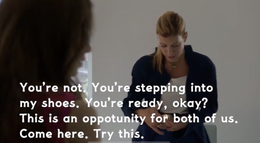 You’re not. You’re stepping into my shoes. You’re ready, okay? 아니야, 한 걸음 올라갔을 때야. 준비됐잖아.This is an opportunity for both of us. Come here. Try this. 우리 둘에게 좋은 기회라고 이거 틀어봐.