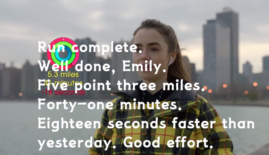 Run Complete . 走り は Well d one 、 Emily 。잘했어요. 에밀리. Five Point three miles.5.3 miles Forty-one minutes.41분. Eighteen seconds faster than yesterday. 어제보다 18초 빨랐어요.Good effort. 수고하셨습니다.