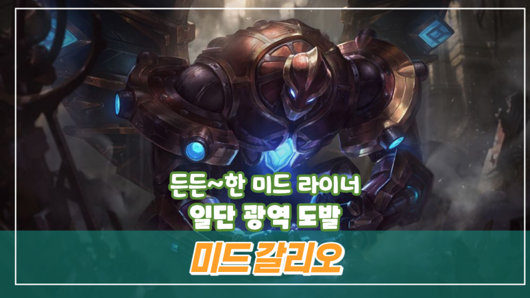 만나서 반갑습니다。여러분 게임에 대한 다양한 정보를 다루는 롤드사입니다.오늘 제가 여러분과 함께 살펴볼 챔프는 미드가리오입니다.갈리오는 미드서 제대로 마치 국밥처럼 플레이해주는 챔프이면서 동시에 궁극기를 통한 합류로 아군을 보조하는 역할을 하는 챔피언입니다.