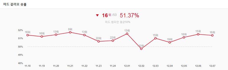갈리오는 현재 3티어에 위치하고 있는데 승률만 놓고 보면 51.37%로 높은 효율을 보이는 챔프이기도 합니다.갈리오 기본 라인전은 스킬과 패시브를 활용하여 라인을 빠르게 눌러 로밍 또는 로밍 낚시를 통한 교전이 있습니다.