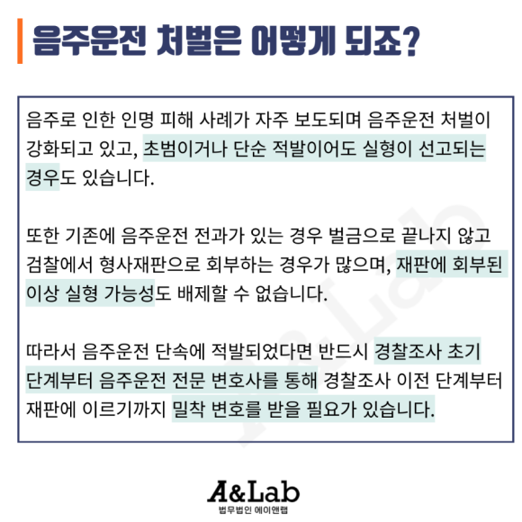 음주운전 등 교통사건을 담당하고 있는 법무법인 A&Lab입니다.