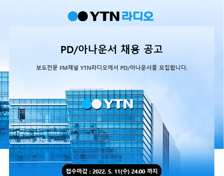 오늘은 YTN 라디오에서 PD와 아나운서를 채용하겠습니다.
