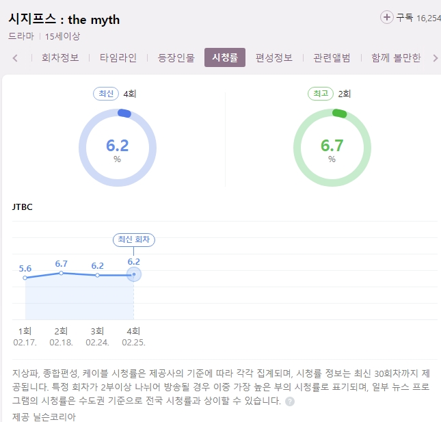 시청률은 최고 6.7%입니다. 나쁜 시청률은 아니지만 처음 기대보다는 그 수치가 낮은 편이에요.