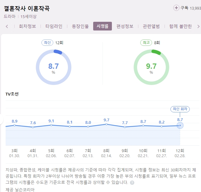 기대가 컸던 만큼 실망도 큰 작품입니다. 하지만 최고 시처율은 8.7%, 역시 임성한 작가의 힘은 대단해!