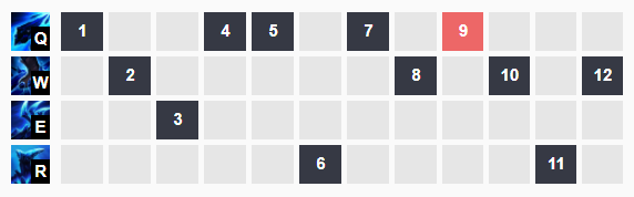 스킬을 마스터하는 순서대로 알려드리겠습니다 아시다시피 산들바람 나락에서는 3레벨로 시작을 합니다만, 3스킬 포인트는 Q스킬과 W스킬, E스킬에 각각 하나씩 투자를 하고 나서 Q-W-E 순으로 마스터를 합니다. Q 스킬을 처음 마스터하는 이유는 레벨 5에서 재사용 대기시간이 4초에 불과하고 파편이 대상을 관통하기 때문에 미니언을 활용하면 생각보다 먼 거리에서 어둠의 수확 스택을 쌓을 수 있기 때문이며, 두 번째로 W 스킬을 마스터하는 이유는 스킬 레벨이 상승함에 따라 발을 묶는 시간이 늘어나기 때문입니다.