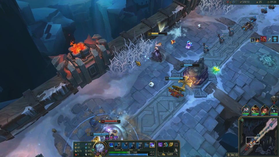 철자는 점멸과 표식을 사용하는 것이 좋습니다. 얼음 긁기 길(Glacial Path)이라는 뛰어난 이동기를 갖고는 있지만 이동하는 시간이 그리 빠르지 않아 서릿발(Ring of Frost)과 얼음 무덤(Frozen Tomb)을 제대로 쓸 수 있는 위치를 선정하기는 쉽지 않은데. 표지판을 사용하면 빠르게 적에게 접근할 수 있기 때문에 서릿발과 얼음무덤을 다섯 챔피언 모두에게 적중시키는 상황도 만들어 낼 수 있어요.