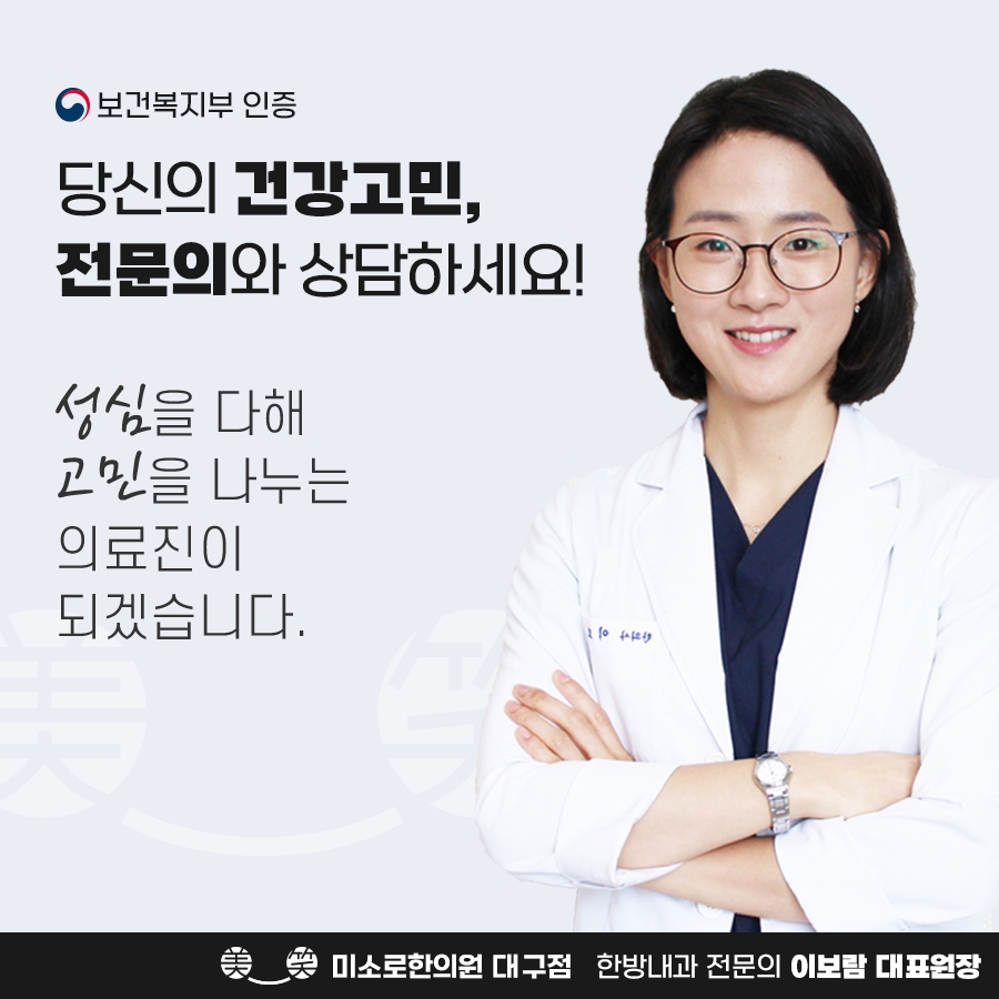 우리 몸의 체질은 개개인에 따라 다르기 때문에 맞춤 한방 솔루션을 진행하면 보다 빠른 회복력을 기대할 수 있고, 한약 복용으로 인체 내부의 장부 기능을 튼튼히 하여 컨디션을 높이고 방어력을 키울 수 있을 것으로 기대할 수 있었습니다.