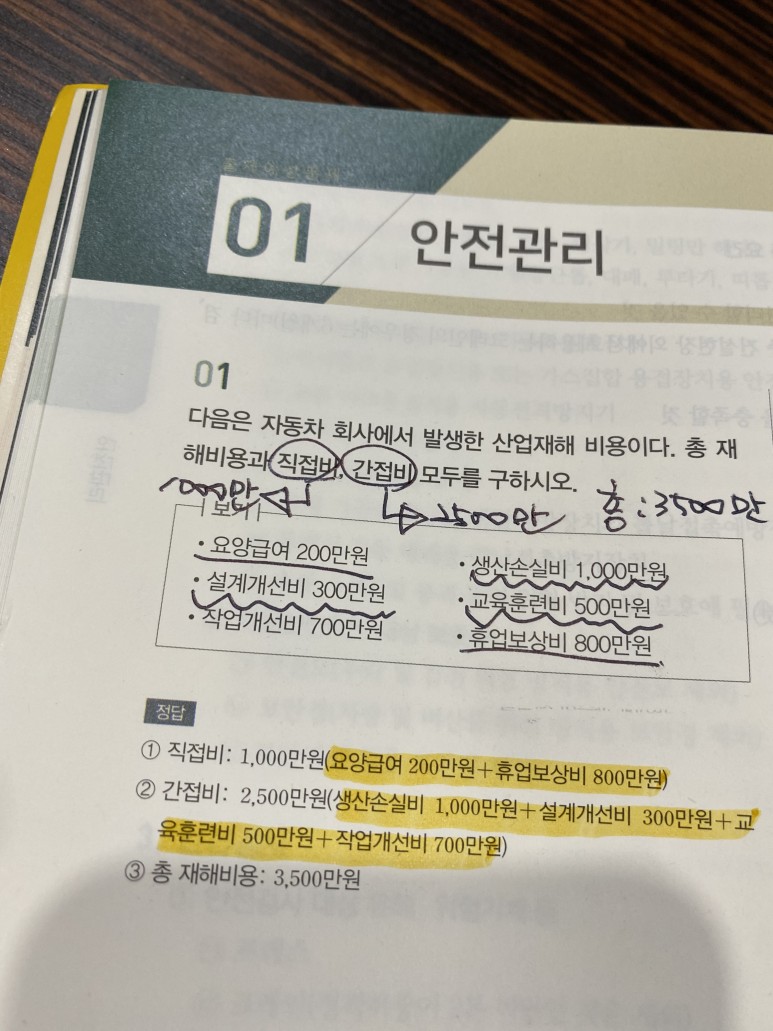 산업안전기사 필기시험은 CBT 문제은행 방식으로 출제되기 때문에 기존에 출제됐던 개념이 반복적으로 다시 나온다는 특징이 있기 때문에 문제를 풀면서 외운 내용도 많았습니다. 왜냐하면 강의 때 이해가 되더라도 문제 해결에서 틀렸을 때는 교수님께 질문해서 완전히 소화하는 방식으로 공부했기 때문입니다.