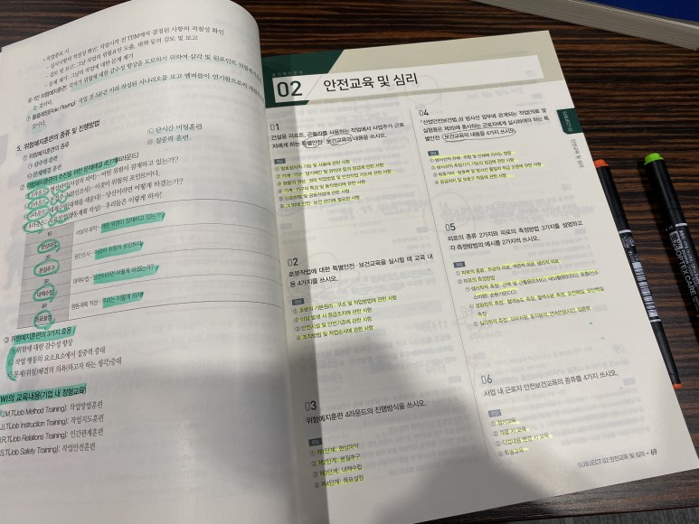 인체공학 및 시스템안전공학은 시험과목을 통틀어 가장 어려웠습니다. 인체공학의 경우 처음 접하는 내용이 많아 온라인 강의와 교재를 반복할 수밖에 없었습니다. 시스템안전공학의 경우 열압박지수를 구하는 공식, 옥스퍼드지수, 습구흑구온도지수 등을 반드시 암기해야 했습니다.