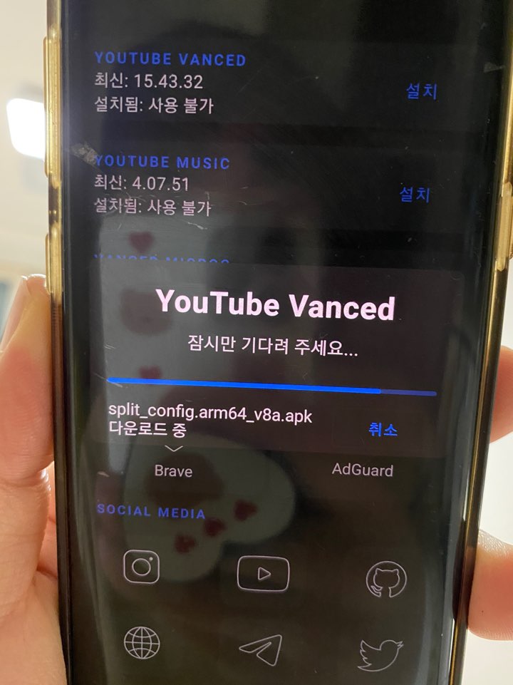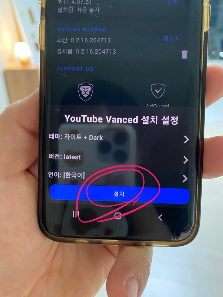 테마에 라이트 dark 취향으로 선택해주세요youtube vanced 설치가 순조롭게 진행되고 있습니다.