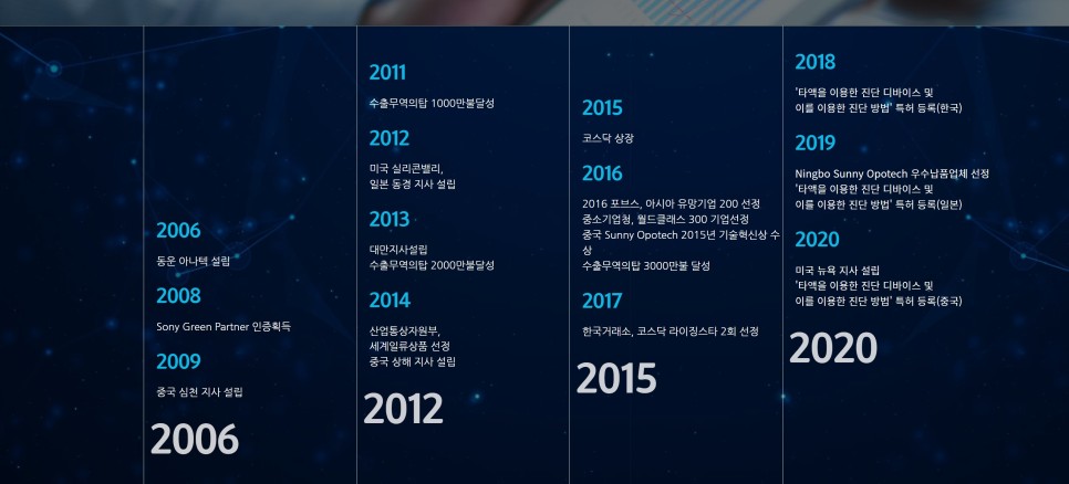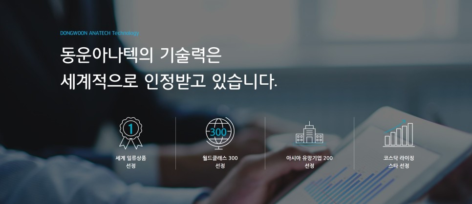 2006년 설립된 동운아나텍은 기본적으로 회사의 기술력은 검증된 곳이기 때문에 세계일류상품 선정을 비롯해 월드클래스300 선정과 아시아 유망기업 200 및 코스닥라이징스타까지 선정된 이력이 있는 유망기업이라 할 수 있습니다.