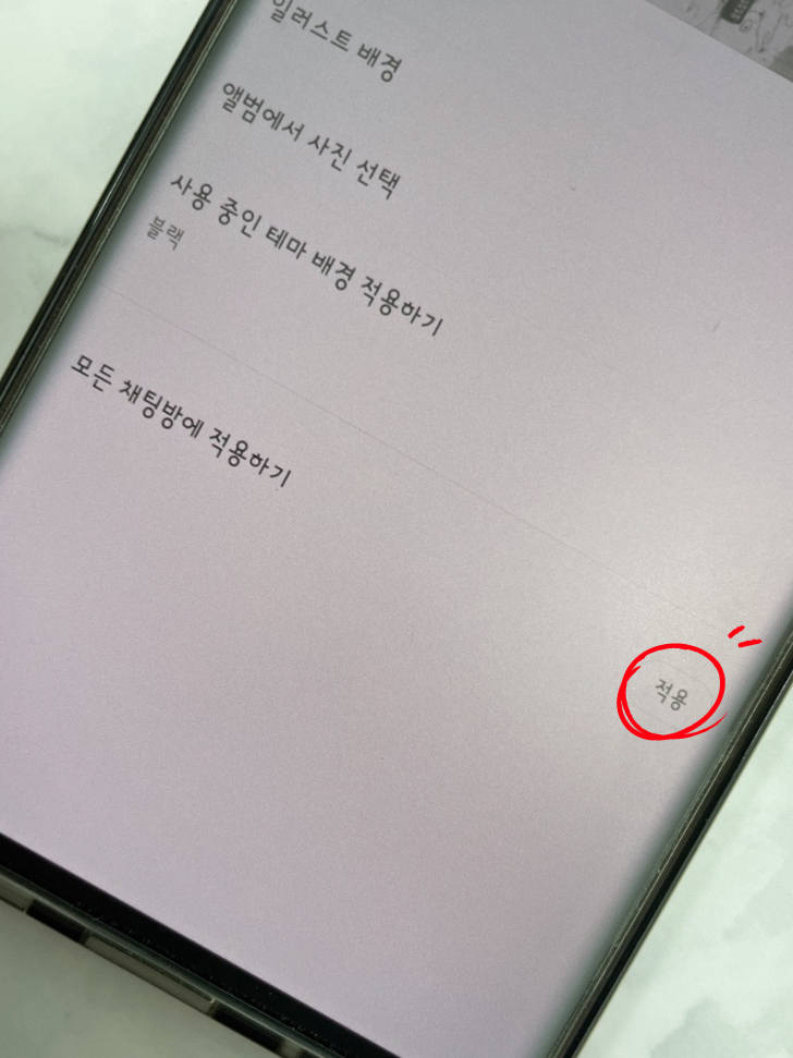 설정 화면에 들어가면 현재 차트룸의 배경 화면을 선택하면 전체 설정에 있는 메뉴와 동일하게 표시됩니다. 원하시는 기준으로 진행됩니다.