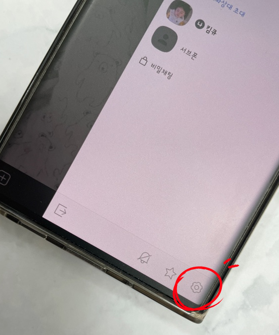 변경하기 위해서 카톡부터 진행해야 합니다. 수행 후 우측 상단의 톱니바퀴 아이콘을 누릅니다.