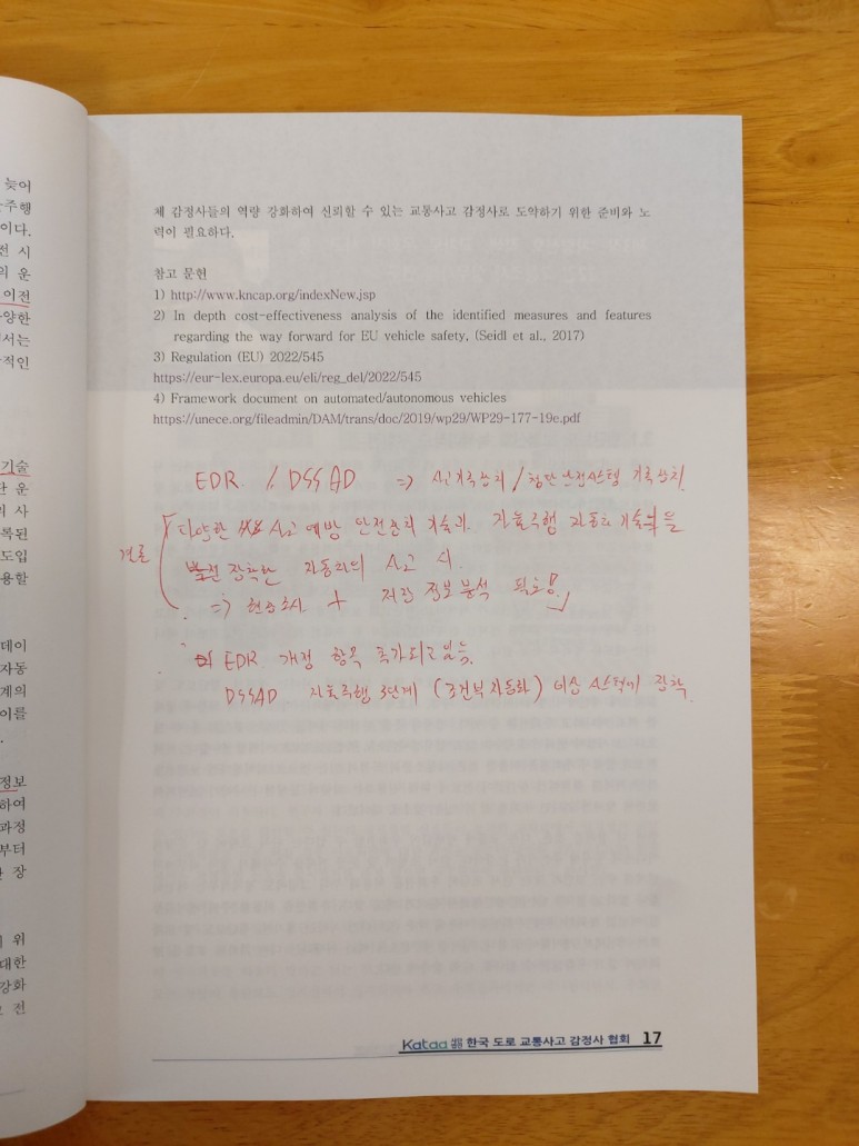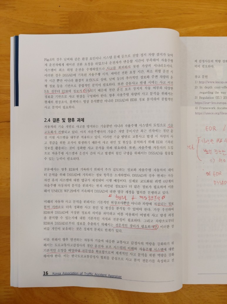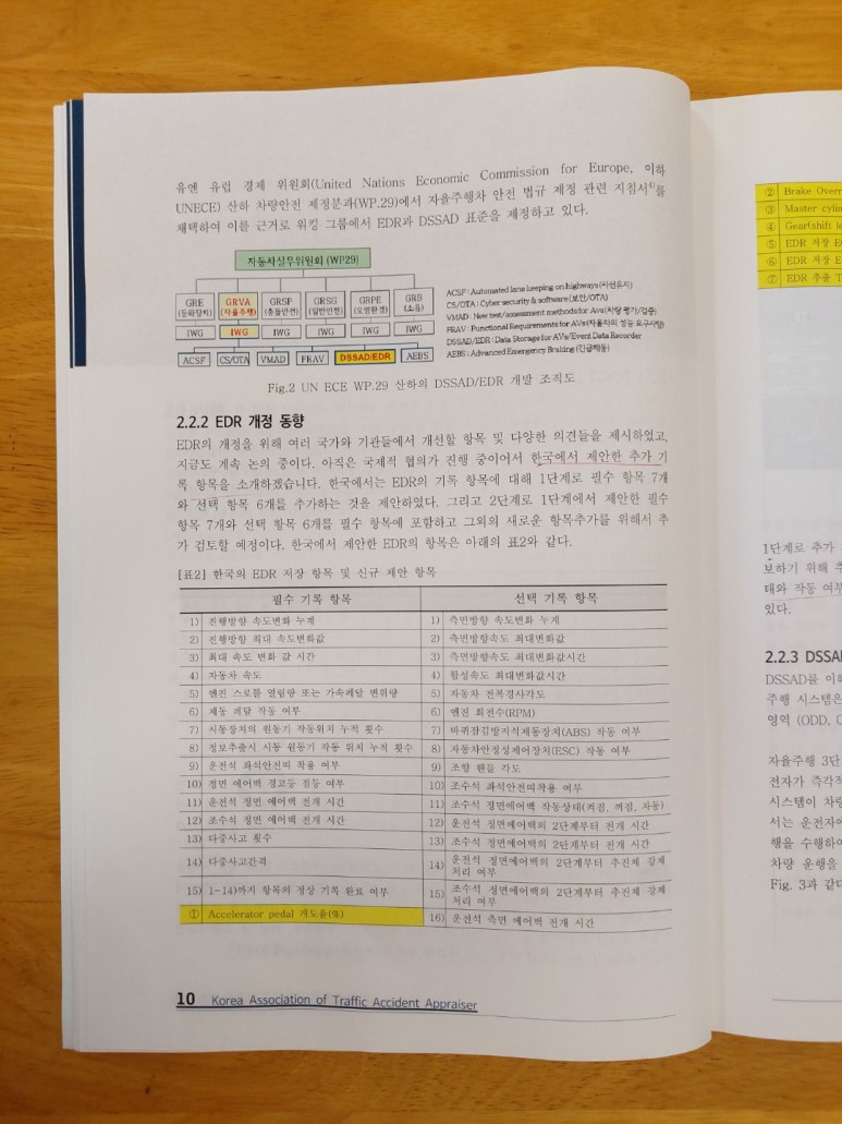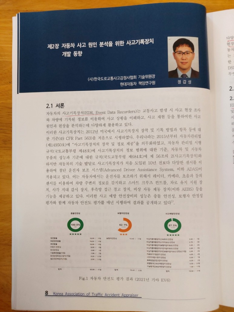 자료출처 : 2022년도 전문교육교재/(사)한국도로교통사고감정사협회 발행 2022년 5월/저자가 정갑성 지속적으로 발전하고 있는 자동차관련 기술을 장착한 자동차의 충돌, 사고분석의 경우 기본적인 현장조사뿐만 아니라 차량에 저장되는 EDR, DSSAD 정보분석을 기반으로 보다 정확한 사고원인 및 사고현상을 분석하여야 한다.