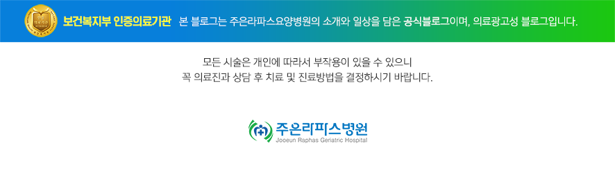 안녕하세요 노인요양병원 주은 라파스병원입니다.
