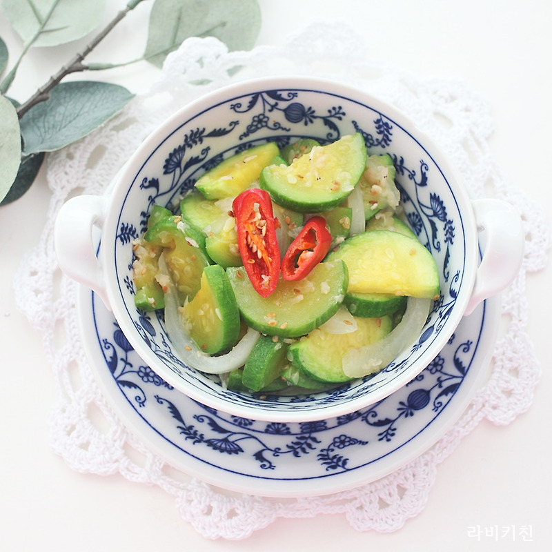 녹음이 짙게 자란 애호박은 재료를 구하기 쉽고 살이 조여 달콤한 맛이 좋아 자주 이용하는 식재료입니다.호박요리로 호박나물이나 호박찌개, 호박전 등 호박반찬으로도 이용할 수 있고 호박찌개나 국요리 재료로도 이용할 수 있는 채소입니다.