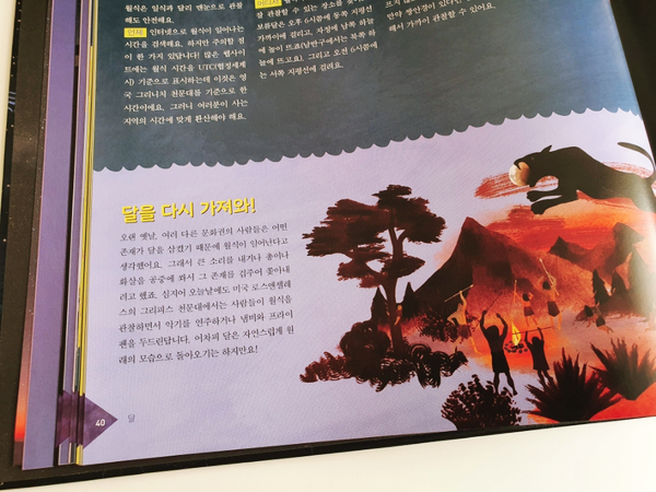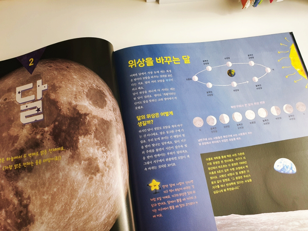 우리 하늘에서 두 번째로 밝은 천체 달에 대한 이야기입니다.달 표면의 자세한 지형에 대한 사진도 볼 수 있습니다.달의 공전에 따른 형태의 변화와 달이 태어난 과정 등이 재미있게 나와 있습니다.