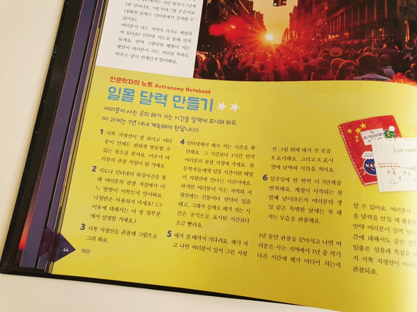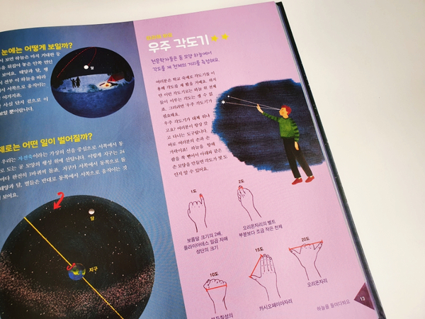 중간중간 작은 코너에 들어가 있는 따라해보세요는 하늘을 보다 즐겁게 관찰할 수 있는 활동을 담고 있습니다.여러가지 만들기와 몸으로 할 수 있는 재미있는 활동들이 많아서 꼭 해보고 싶습니다.^^만드는 것을 좋아하는 친구에게는 천문학을 배우고 관찰도구도 만들 수 있는 매우 즐거운 경험이 되겠네요.