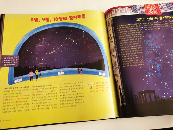 계절에 따라 하늘에서 관찰할 수 있는 별자리가 어떤 것이 있는지 월별로 나뉘어져 있고 별자리에 대한 여러 신화 속 이야기도 나와 재미있게 읽은 부분입니다.평면 천체도를 만드는 흉내를 내보세요. 코너 절대! 놓치지 마세요.~~