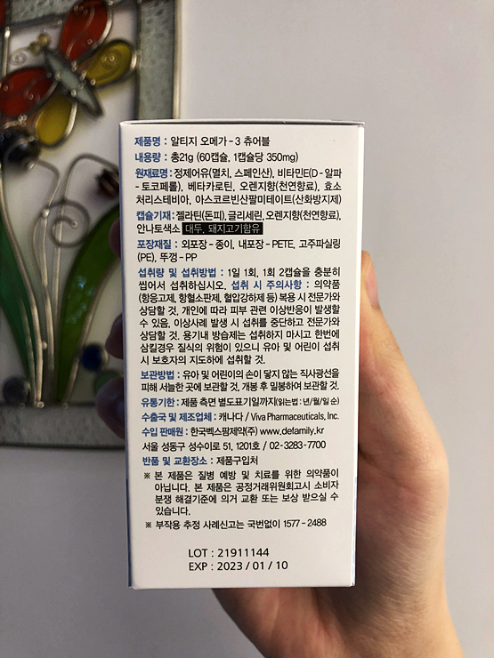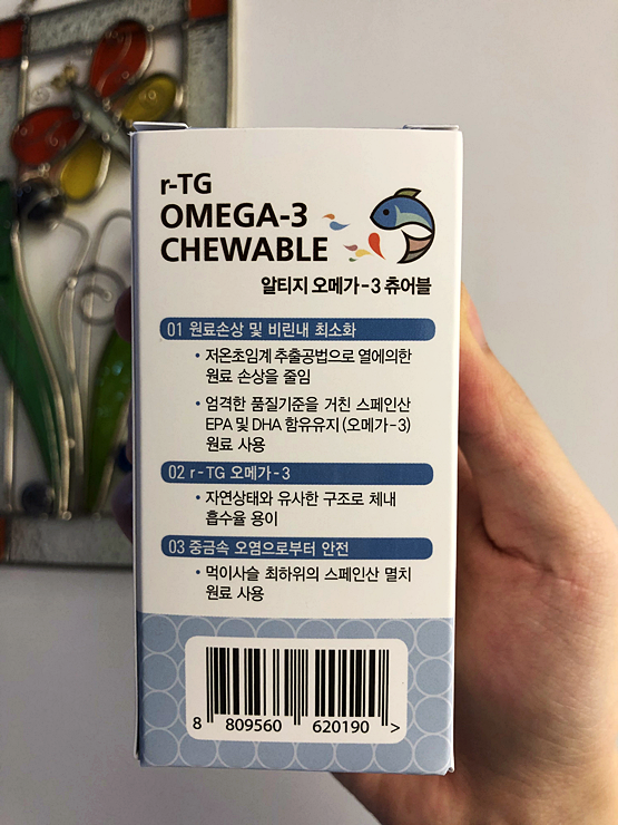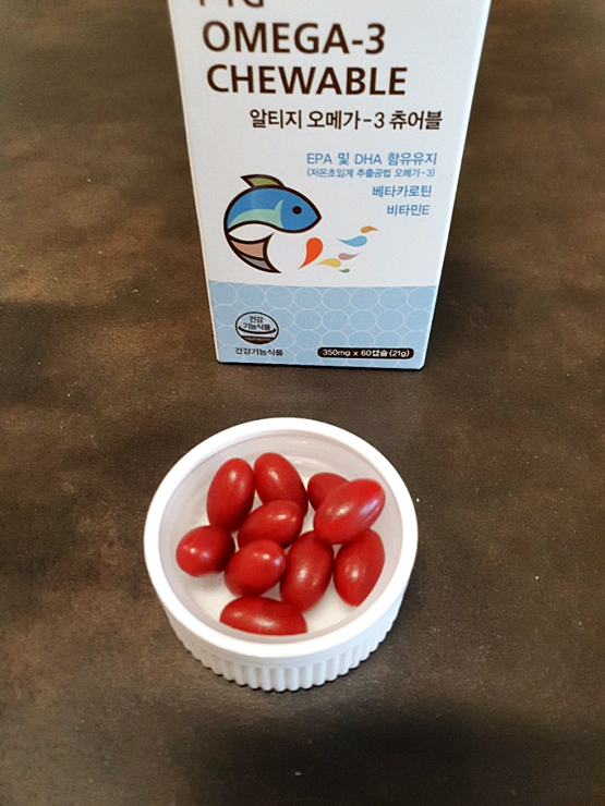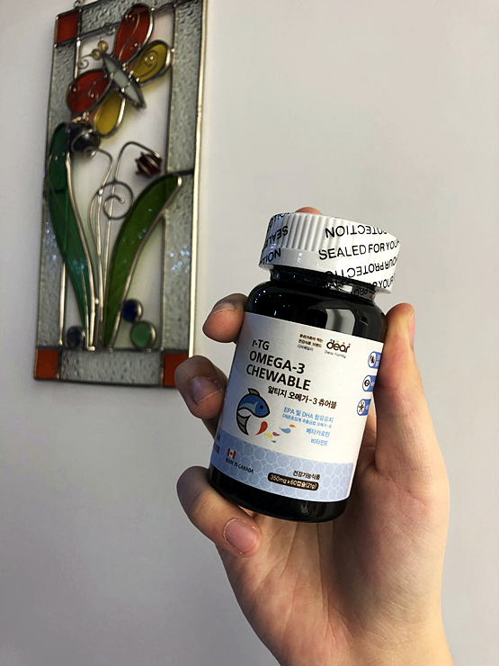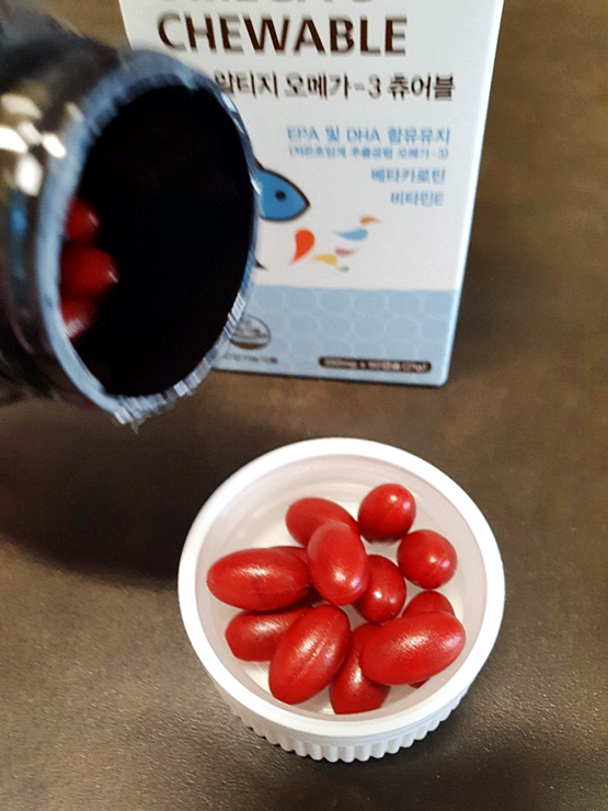 산뜻한 오렌지향과 부드럽고 튜어블한 형태로 제조하여 거부감을 일으키는 비린내가 적고 목넘김도 편안합니다.저희 두 아들과 아내를 위해 만든 제품이기 때문에 이 부분을 가장 신경 써서 개발했습니다.지방이 많이 함유된 식단을 자주 드시는 분들은 동맥경화 영양제인 얼티지오메가3 튜어블을 하루에 2개씩 식후에 섭취해 보는 것이 좋습니다.