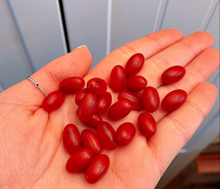 또한 눈의 간상세포에서 물체를 볼 수 있는 색소를 합성하는 데 관여하여 눈에 있는 여러 조직의 세포기능을 활성화시켜 시력을 보호하고 야맹증 증상을 완화하는 데도 도움을 줍니다.이 제품은 이 베타카로틴 성분으로 독특하게 붉은 빛을 띠고 있습니다.