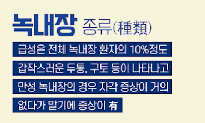 녹내장은 만성 녹내장과 급성 녹내장으로 나뉩니다.